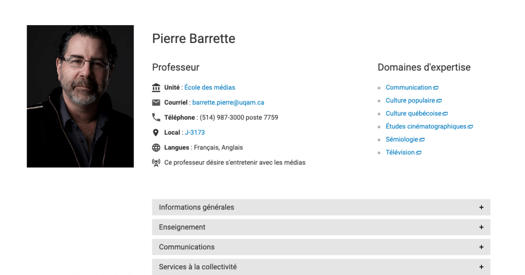 Le problème : qu’on l’appelle “corps professoral », “faculté” (dans les business schools) ou “l’équipe” (“laboratoires”), chaque site web d’université, d’école ou de laboratoire présente généralement un annuaire qui permet d’accéder aux “fiches professeurs” ou “fiches annuaire”. Mais ce type de contenu est souvent peu mis en valeur ou même optimisé : l’accès à ces fiches s’effectue souvent via des filtres organisationnels ou statutaires (“voir les professeurs par département”, “par discipline ») et très peu souvent par des filtres orientés utilisateur (par exemple par thème ou par sujet d’actualité, utile pour les journalistes). Le contenu des fiches est parfois aussi assez sommaire (photo, informations de contact, CV) alors que beaucoup d’éléments sont intéressants à relier avec ces fiches : citations, tribunes et articles dans la presse, le fait d’être disponible pour les journalistes, les sujets et thèmes de prédilection (au-delà des “disciplines” universitaires), les programmes / diplômes dans lesquels le professeur enseigne, les distinctions…